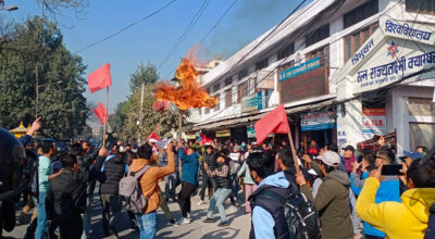 अनेरास्ववियूद्वारा शिक्षामन्त्री खनालको पुत्ला दहन