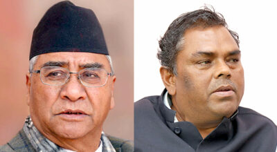 काठमाडौं , पुस २१ । नेपाली कांग्रेस सभापति शेरबहादुर देउवा र जसपाका अध्यक्ष उपेन्द्र यादवबीच