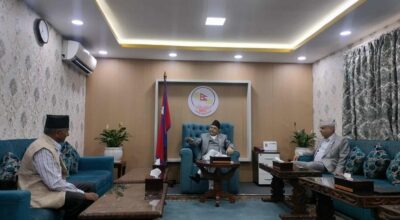 संसद्को गतिरोध अन्त्य गर्न सभामुख घिमिरे र तीन दलका प्रमुख सचेतकबिच घनिभुत छलफल सुरु