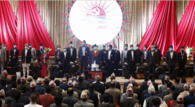 अन्तर्राष्ट्रिय कम्युनिस्ट गीत गाउँदै सुरु भयो एमाले विधान महाधिवेशन