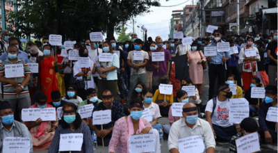 काठमाडौं, भदौ ३ । थरूहट थारुवान राष्ट्रिय मोर्चा केन्द्रीय संयोजन समितिले काठमाडौंको माइतीघरमा धर्ना दिएको