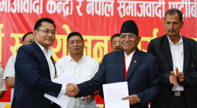 काठमाडौं, १२ जेठ । नेकपा (माओवादी केन्द्र) र नेपाल समाजवादी पार्टीबीच सोमबार समायोजन सहमति भएको