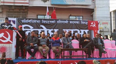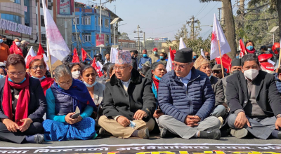 आज पनि प्रचण्ड र माधव नेपाल माइतीघरमा , संसद विघटन असंवैधानिक भएको भन्द धर्ना