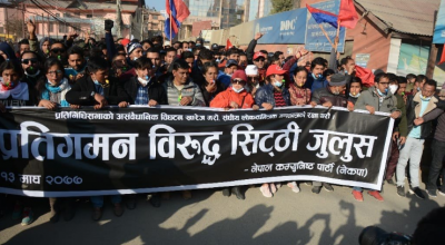 काठमाडौं , माघ १५ । नेपाल कम्युनिष्ट पार्टी (नेकपा) प्रचण्ड(नेपाल पक्षले प्रतिनिधिसभा विघटनको विरुद्धमा आन्दोलन