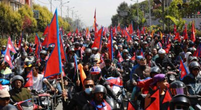 काठमाडौं,२१ फागुन । राजसंस्था पुनस्स्थापनाको माग गर्दै राष्ट्रिय प्रजातन्त्र पार्टीले विशाल मोटरसाइकल र्याली निकालेको छ