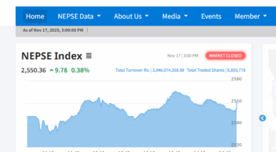 नेप्से परिसूचकसंगै कारोबार रकम पनि वृद्दि, ४ कम्पनीमा सकारात्मक सर्किट